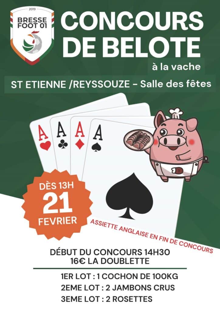 Concours de belote à la vache le 21/02/2026 à Saint-Étienne-sur-Reyssouze – Ain (01)