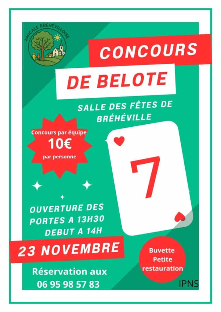 concours de belote par équipe organisé par l’amicale bréhévilloise le 23 novembre à la salle des fêtes