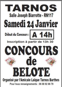 Landes (40) Concours de belote à Rivière Saas et Gourby (Landes) le 17 février 2024 Détails du concours »