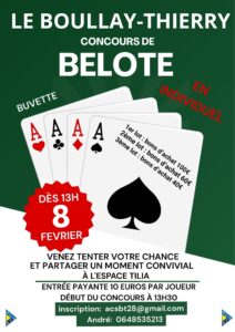 Rhône (69) Concours de belote coinchée le 01 mars 2026 à Francheville – Rhône (69) Détails du concours »