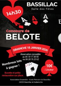 Haute Vienne (87) Concours de belote le 11 Janvier 2026 à Bosmie l’Aiguille – Haute Vienne (87) Détails du concours »