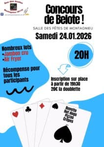 Charente Maritime (17) Concours de belote le 7 février 2026 à Saint Hippolyte – Charente Maritime (17) Détails du concours »