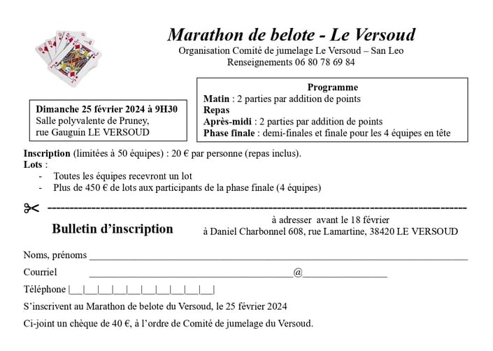 Concours de belote sur la journée Salle polyvalente, rue Gauguin 38420 Le Versoud.