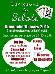 Puy de Dôme (63) Concours de belote dimanche 25 janvier 2015 à Cheix sur Morge – Puy de Dôme Détails du concours »