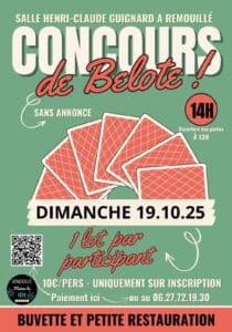 Loire Atlantique (44) Tournoi de belote le 19 octobre 2025 à Remouillé – Loire Atlantique (44) Détails du concours »