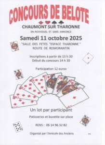 Loir et Cher (41) Concours de belote le samedi 11 octobre 2025 à Chaumont sur Tharonne 41600 – Loir et Cher Détails du concours »