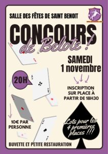 Vosges-88 Concours de belote le 1er novembre 2025 à Saint-Benoit La Chiotte – Vosges (88) Détails du concours »