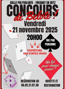 Loire Atlantique (44) Concours de belote le 21 novembre 2025 à Fresnay en Retz (44) – Loire Atlantique Détails du concours »