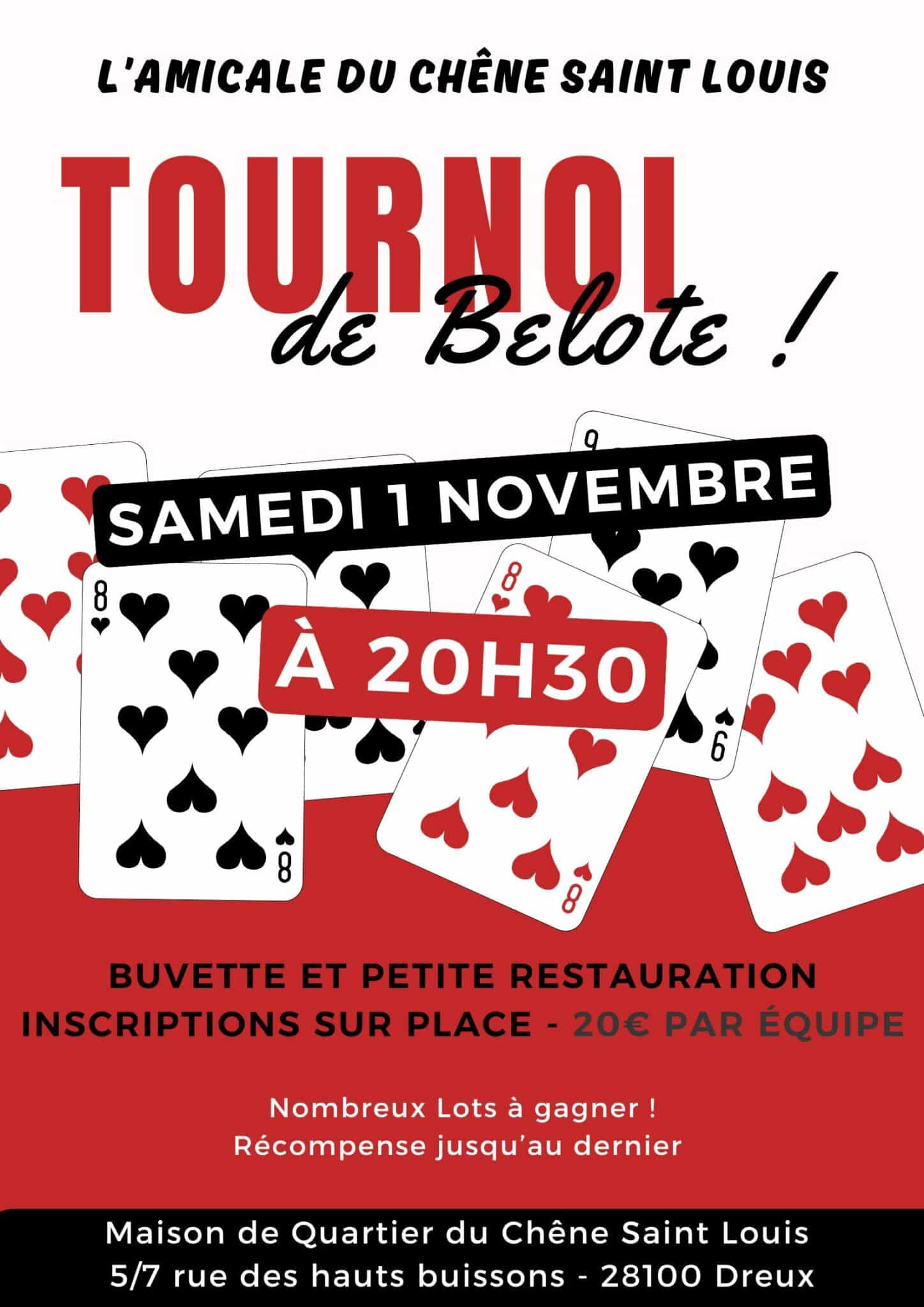 L’amicale du Chêne Saint Louis organise le samedi 1 novembre 2025 un tournoi de belote.