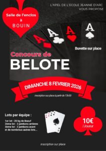 Tournoi de belote le 8 février 2026 à Bouin – Vendée (85)